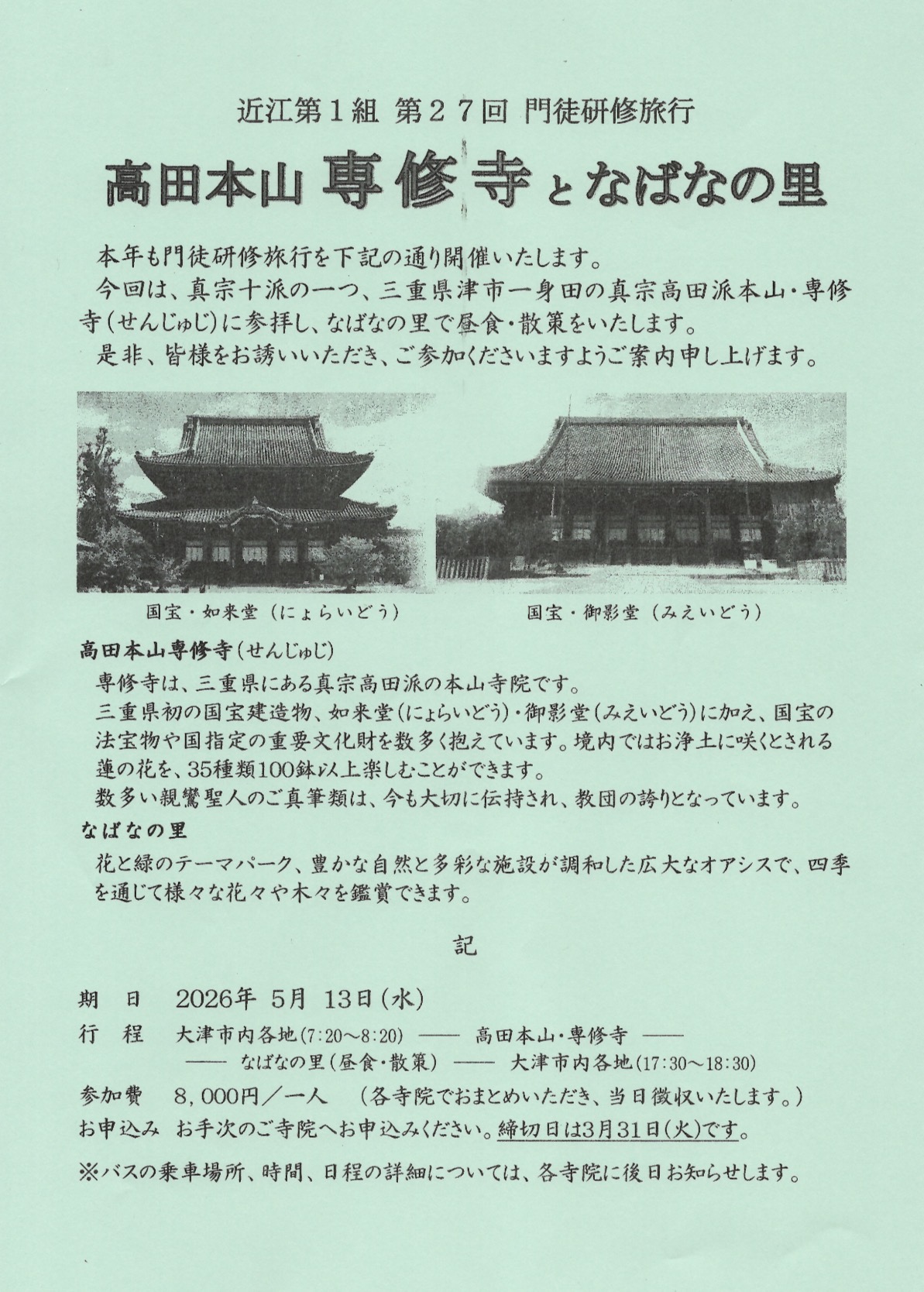 近江第1組門徒研修旅行の案内もご覧ください。
